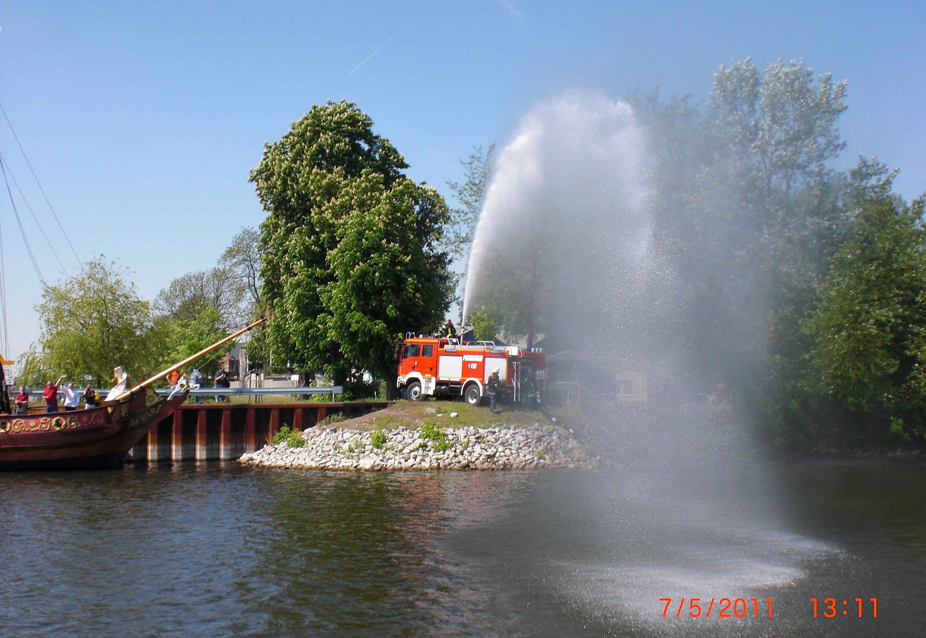 Die Feuerwehr zeigte mit einem druckvollen Strahl den Streckenbeginn an und die „Sehnsucht“ eröffnete mit einem Böllerschuß den Korso.