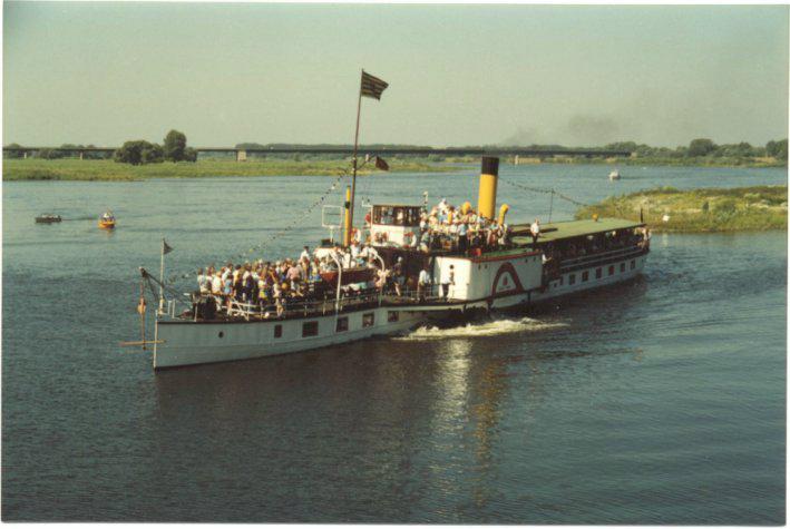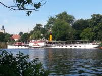 Das Passagierschiff, Raddampfer „Kaiser Wilhelm“, hielt auf seiner Rückreise von Berlin nach Lauenburg in unserer Stadt. Schiffe des Vereins „Historischer Hafen Brandenburg“ haben ihn bei seiner Weiterfahrt durch den Silokanal bis zum Quenzsee begleitet.