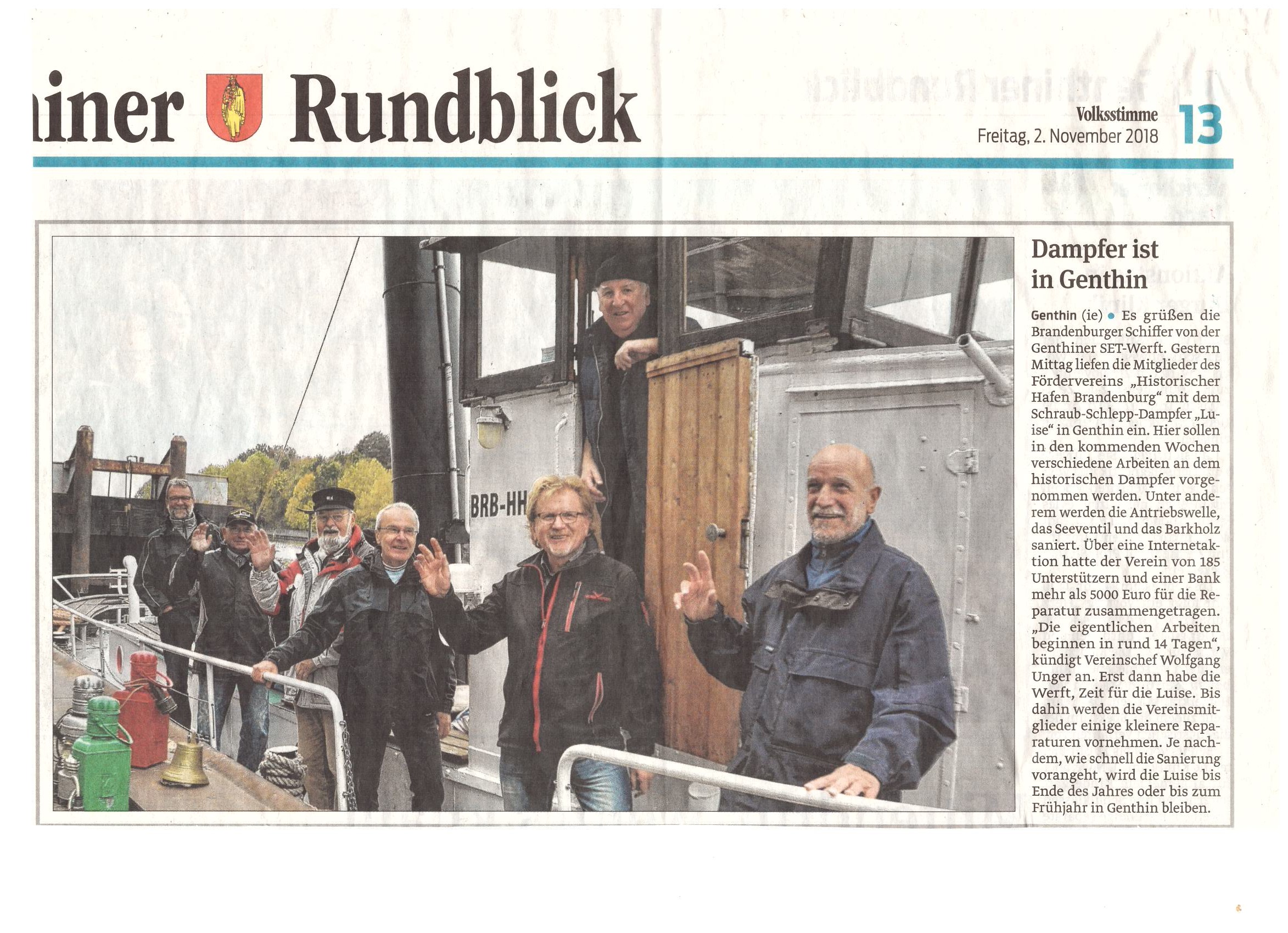 Unser Vereinsschiff LUISE bekommt eine Fitnesskur, die vom Ministerium für Wirtschaft und Energie des Landes Brandenburg unterstützt wird.